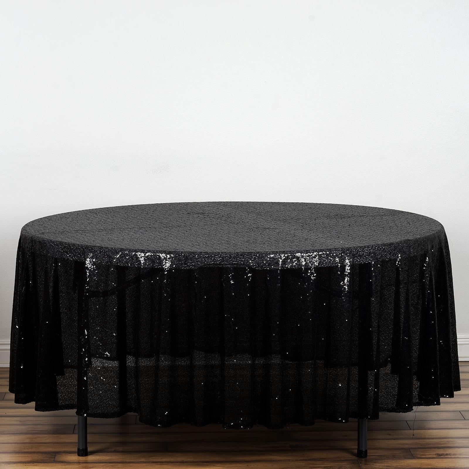 Black Seamless Premium Sequin Round Tablecloth 108"