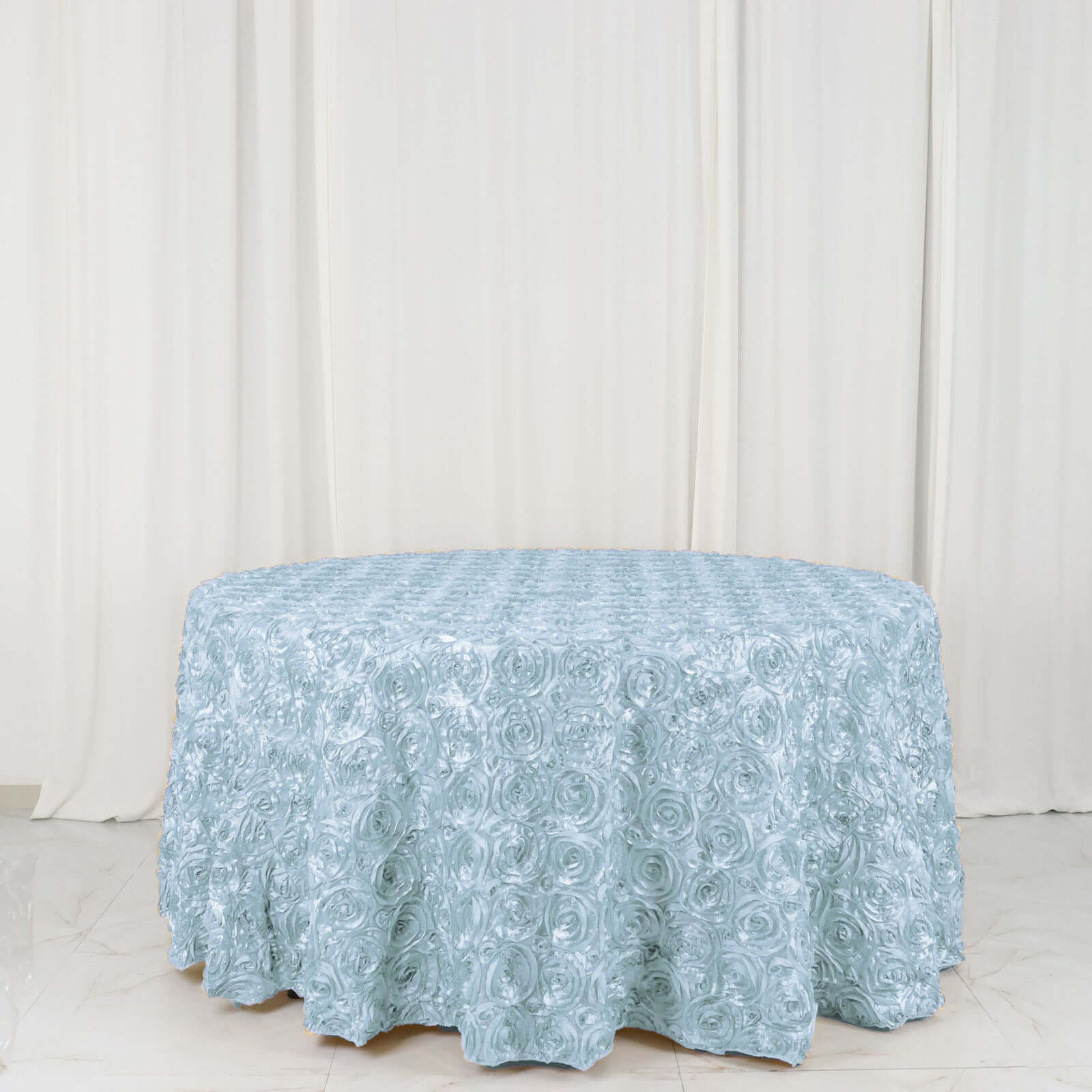 Light Blue Seamless Grandiose 3D Rosette Satin Round Tablecloth 120"