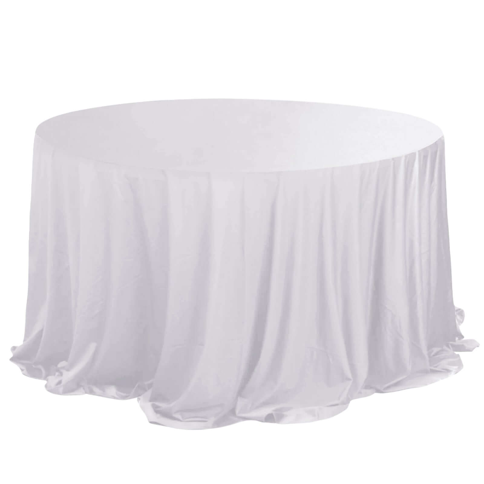 132" White Premium Scuba Wrinkle Free Round Tablecloth, Seamless Scuba Polyester Tablecloth