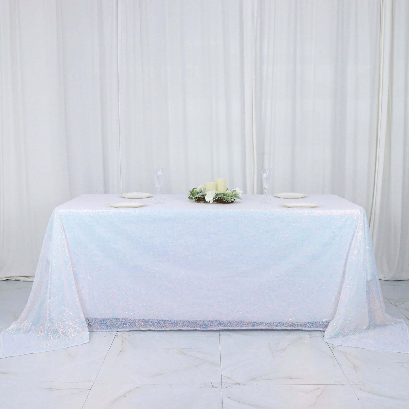Iridescent Blue Seamless Premium Sequin Rectangle Tablecloth 90"x132"