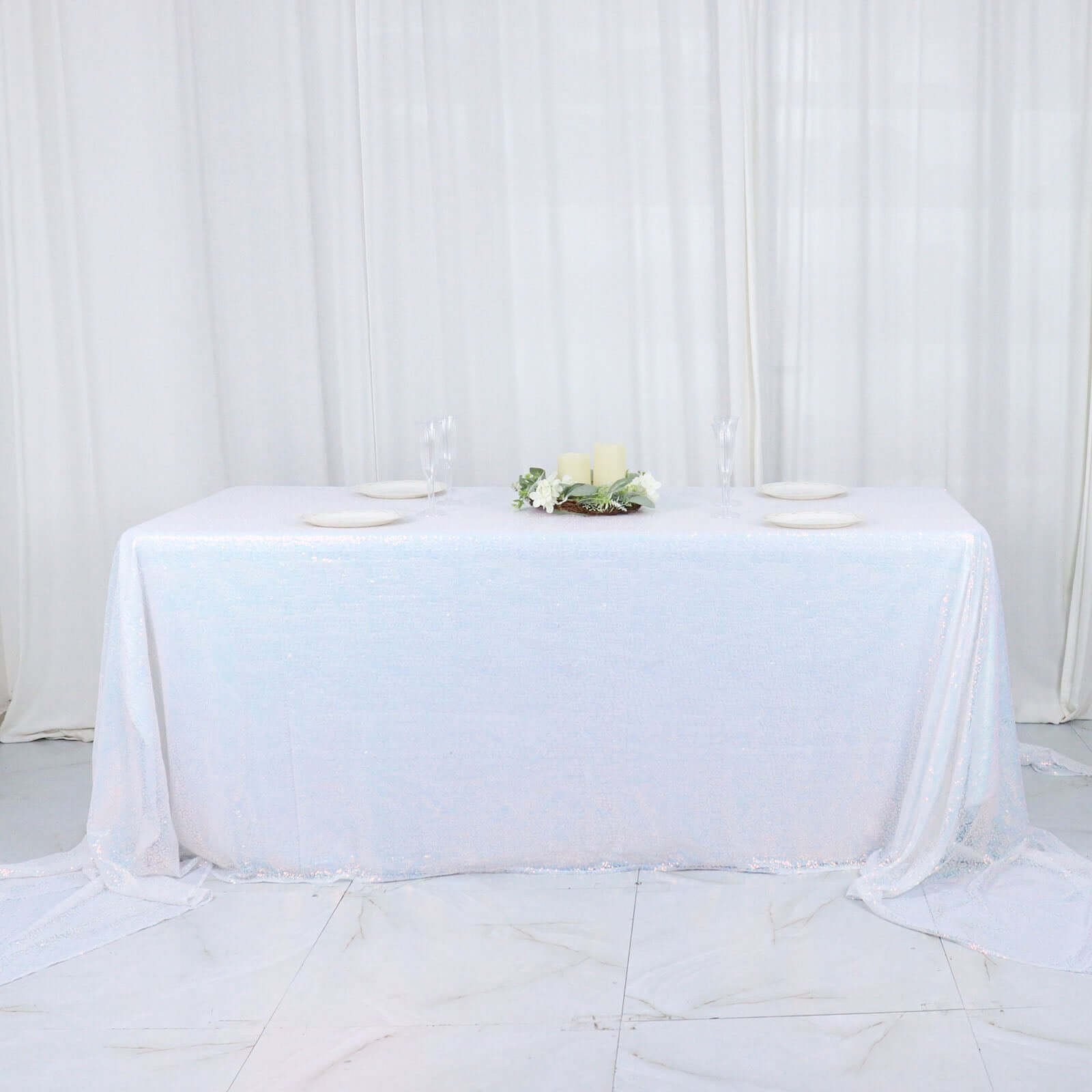 Iridescent Blue Seamless Premium Sequin Rectangle Tablecloth 90"x156"