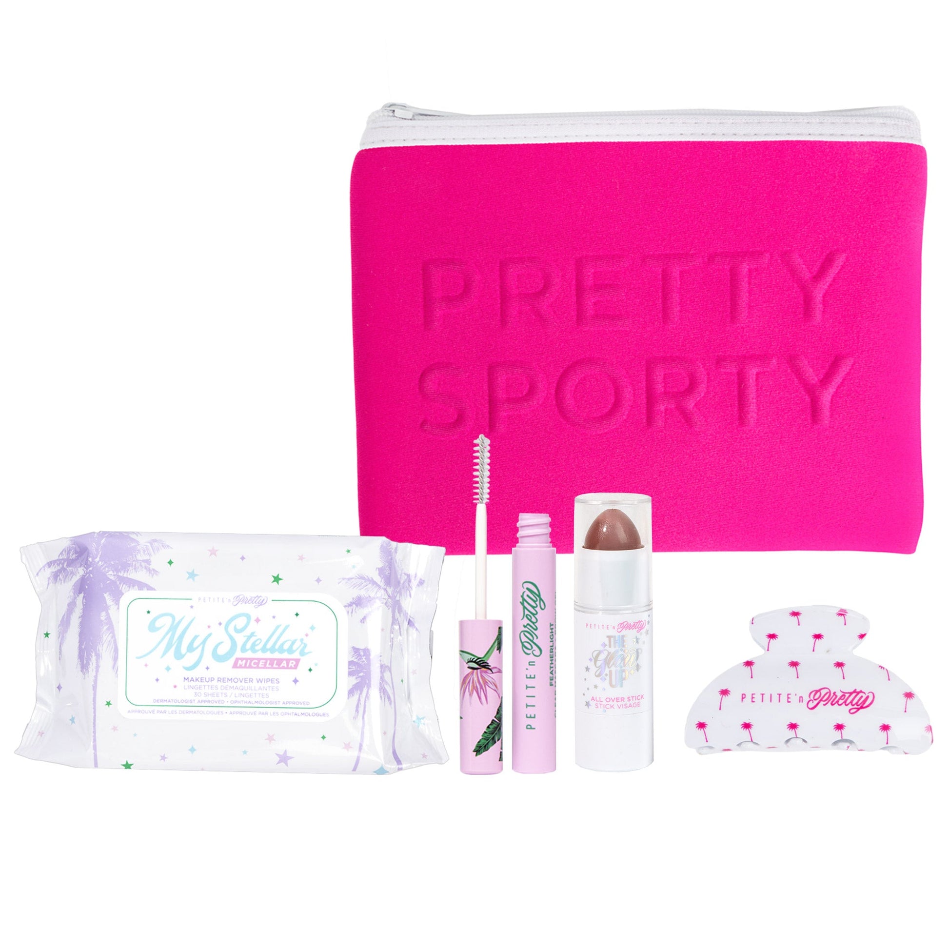 Nail the perfect “no-makeup” makeup look with this oh-so-effortless set! Create a lit-from-within glow with The Glow Up All Over Stick, tame and polish your brows & lashes with our Featherlight Clear Mascara & Brow Gel, and ace your hair game with our NEW Pink Palms Hair Claw. Store it all in our Pretty Sporty Makeup Bag for a super-natural look on the go!