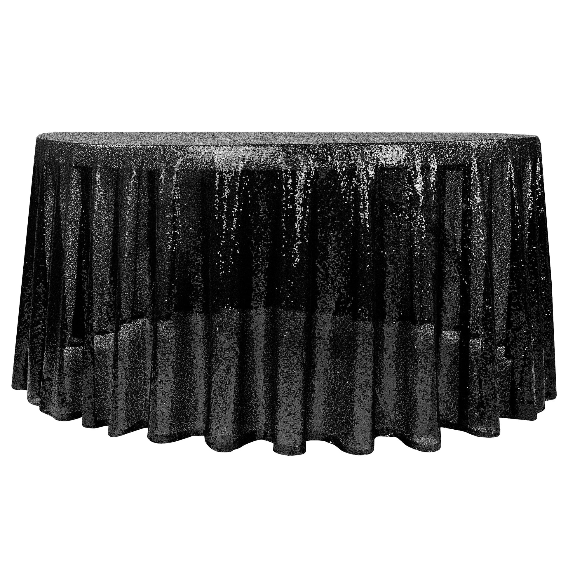 Glitz Sequin Mesh Net Tablecloth 116" Round - Black