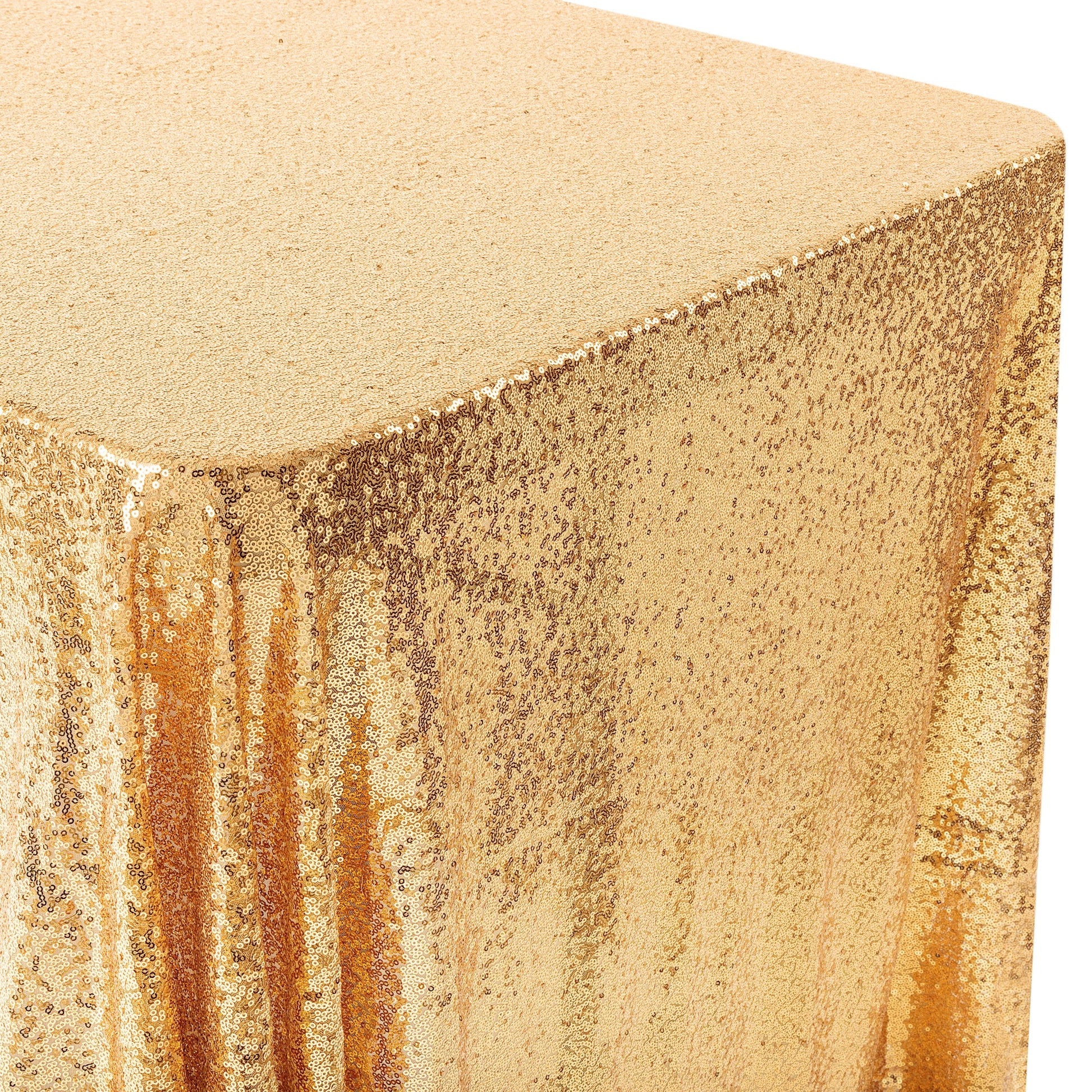 Glitz and glamour galore! A spectrum of sparkle awaits your buffet, dessert, guest, and head tables when you drape them in the elegance of sequin fabric wholesale. Accessorize with glittering gold table numbers and luxe dinnerware for a truly enthralling appeal. Your tablecloth decorating ideas for weddings and parties are limitless with the sultry allure and sophisticated glam of sequins. Now available with a mesh net backing, our sequin tablecloths wholesale are even more affordable than ever! What's more, this simple backing is super easy to clean. Simply wipe with a damp washcloth and reuse for future events to come! No matter what your wedding or party theme, there is always room for a bit of sparkle. Whether your style is modern, vintage, rustic, bohemian, or glam, a rectangular sequin tablecloth is certain to make your decor stand out in a unique and captivating way!