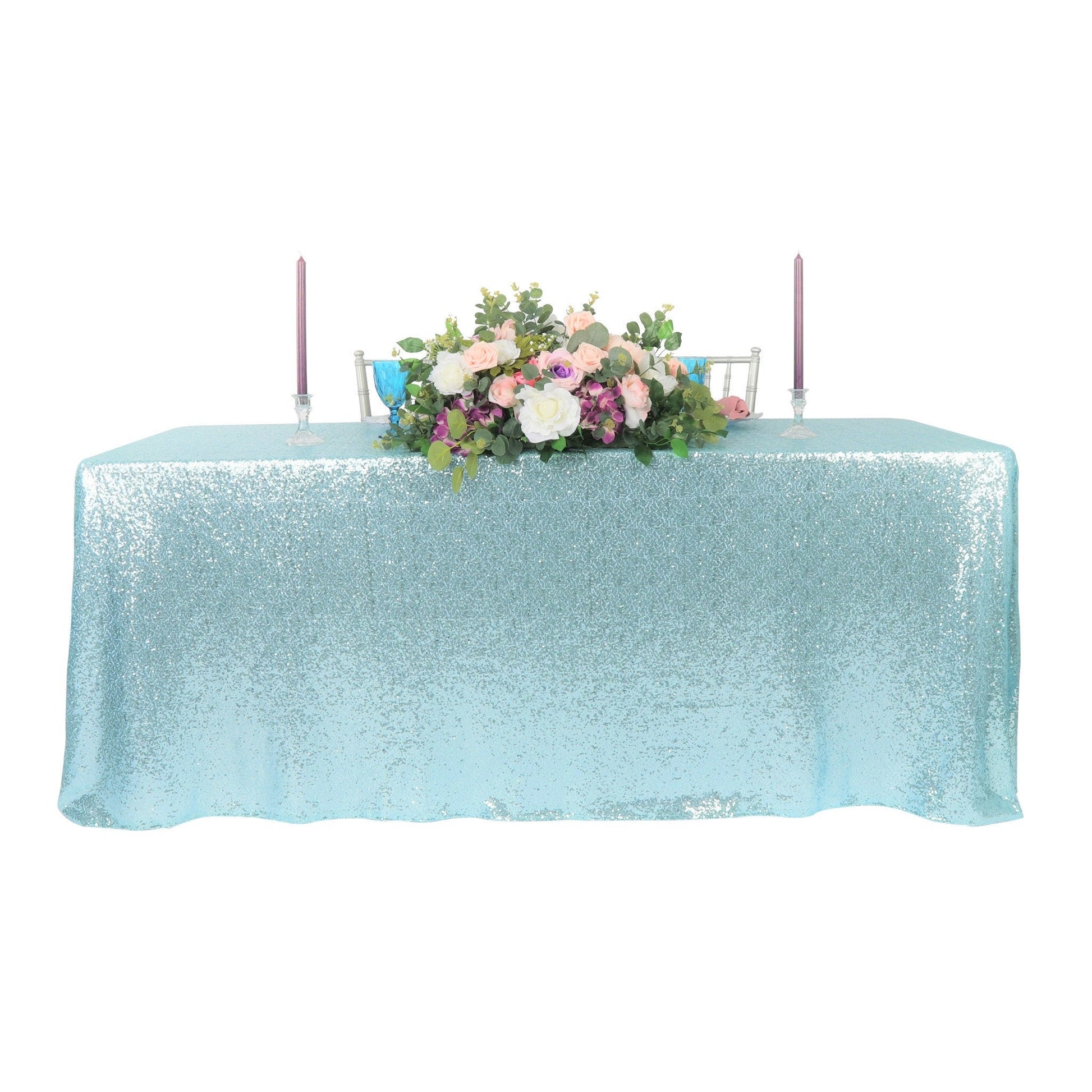 Glitz Sequin Mesh Net Tablecloth 90"x156" Rectangular - Baby Blue