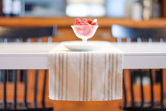Old Lake George - Farmhouse Table Runner Tan Twelve Stripe 7.5' Long