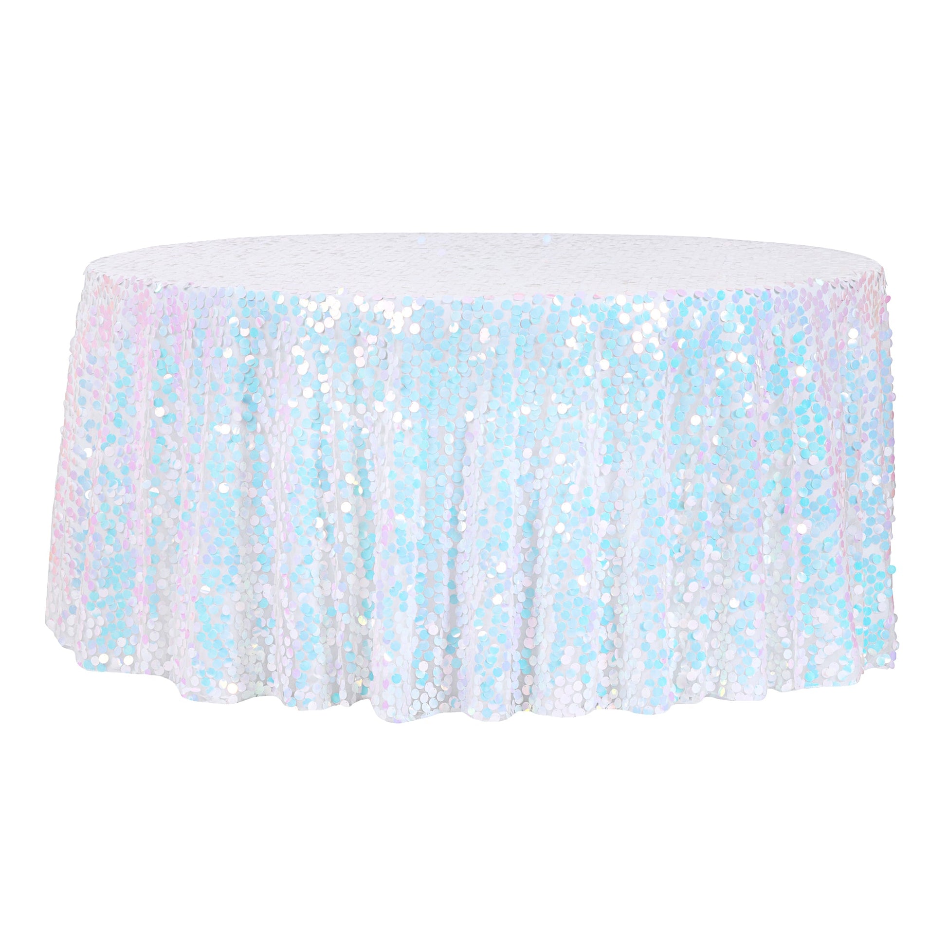 Large Payette Sequin Round 120" Tablecloth - Iridescent White