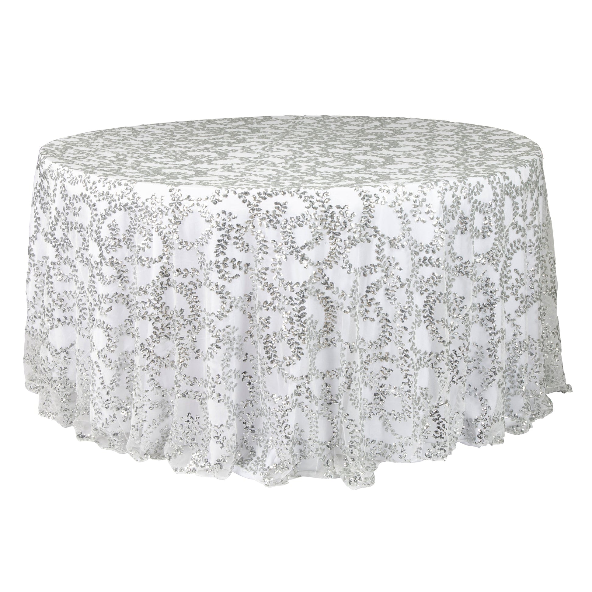 Sequin Vine Tablecloth Overlay 120" Round - Silver